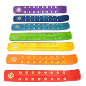 A set of 7 incense burners ash catcher, representing the 7 chakra colors, each having their own respective Chakra symbol.