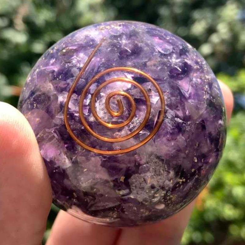 Orgonite Amethyst Sphere -Copper Spiral- 50mm