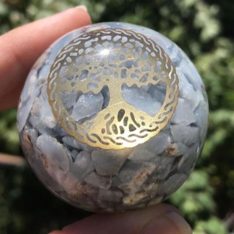 Orgonite Angelite Sphere -Tree of Life- 50mm