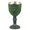 Appearing almost as though a traditional, wooden cup had been transformed to silver, this goblet features the mystical symbol of a pentagram on both its front and back. 5 3/4″ x 3″