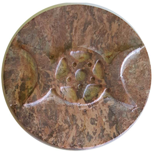 Carved of soapstone, this altar tile depicts the triple moon symbol of the goddess.